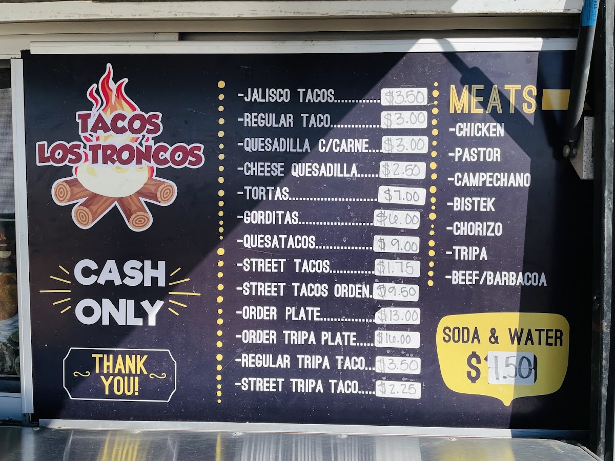 The menu at Tacos Los Troncos offers a satisfying variety of delicious options for taco lovers and beyond. The Orden de Jalisco (con queso) stands out as a flavorful option for those looking for a cheesy, savory treat. If you’re in the mood for variety, the Caja de tacos is perfect for indulging in multiple tacos at once, offering great value. Another crowd-pleaser is the Quesatacos, combining the richness of melted cheese with the crispiness of tacos, making for a tasty bite every time. For those who crave something heartier, the Tortas offer a filling, flavorful alternative to the usual tacos. Finally, the Orden de mini tacos gives you the option to enjoy several small tacos, ideal for sampling a range of flavors. Each dish brings something unique to the table, making Tacos Los Troncos a go-to spot for both taco enthusiasts and newcomers alike.